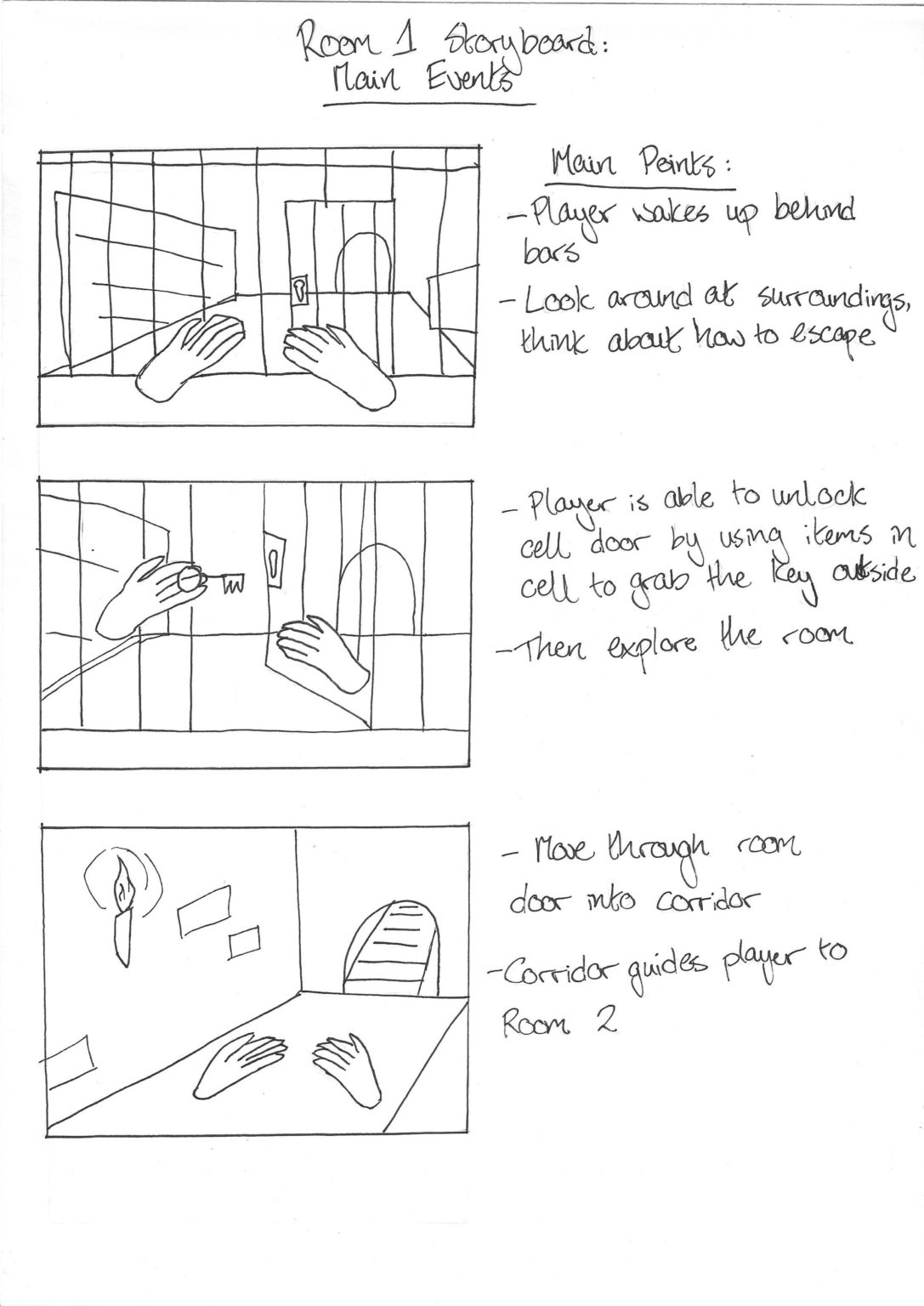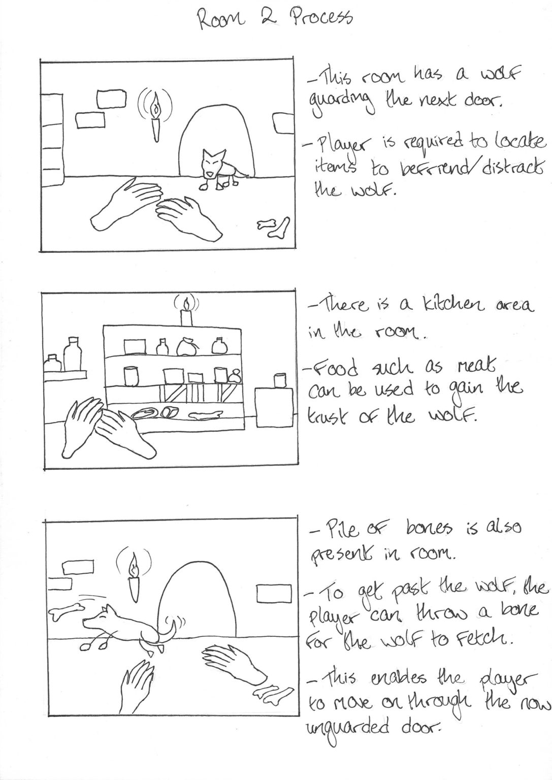 I drew on this research to create my own VR game, utilising elements such as colour, lighting, sound design, and level design to create what can be perceived as an immersive gaming experience. First, I researched existing VR puzzle games, examined their features, and surveyed a broad cross-section of gamers about the most important aspects of both VR and non-VR games. Developing on this research, the game was then designed, levels were laid out, and the main activities of the game were described in storyboard form. Then, once a build of the game was complete, it was tested with players both familiar and unfamiliar with VR games. Feedback on the game's design and functionality was received as a result of this testing, with suggested changes noted for future reference.