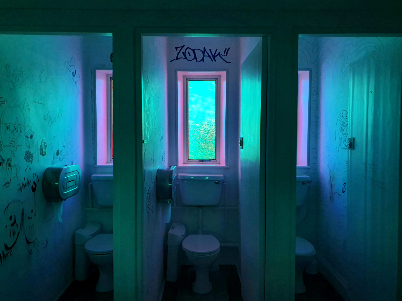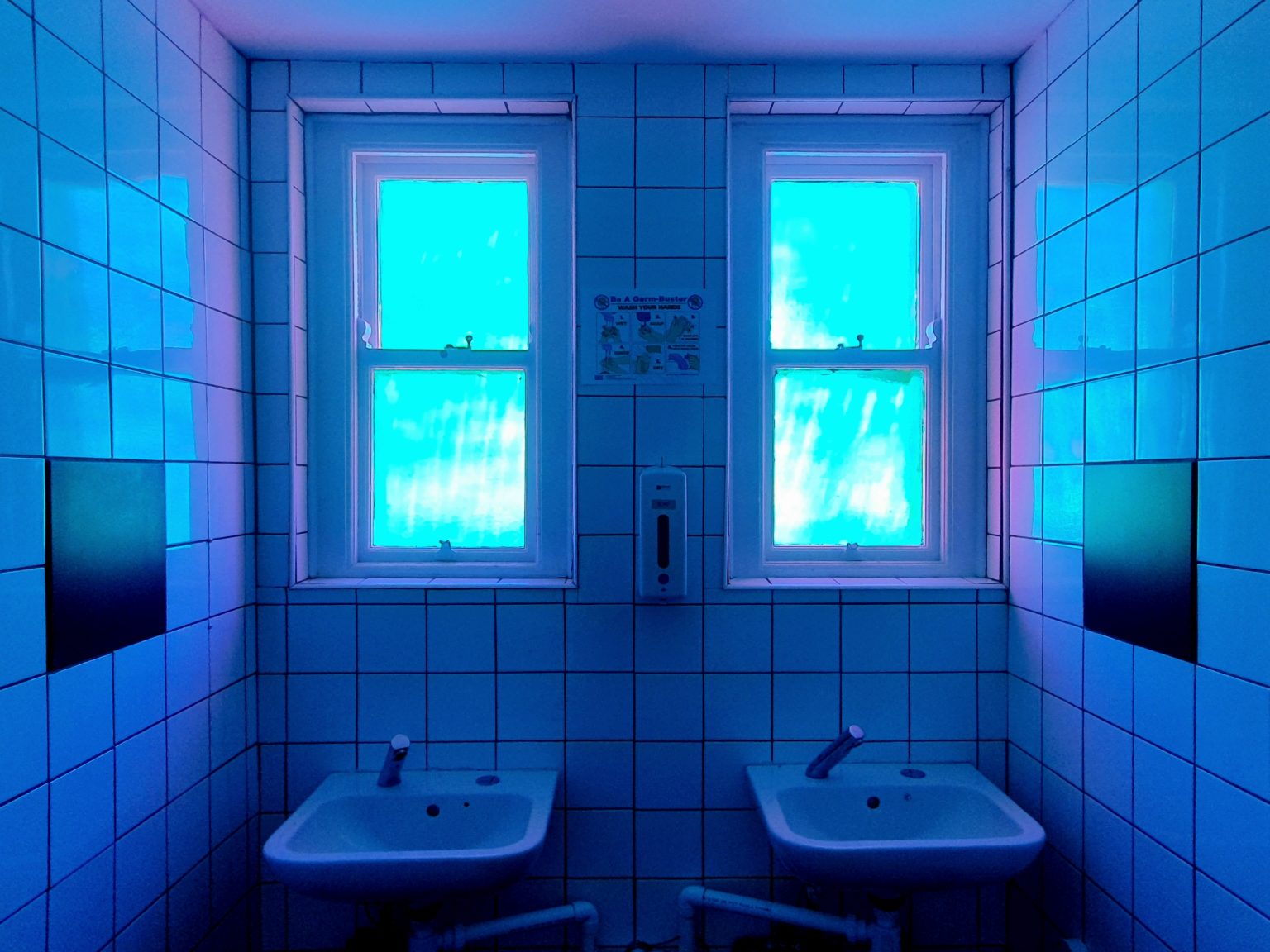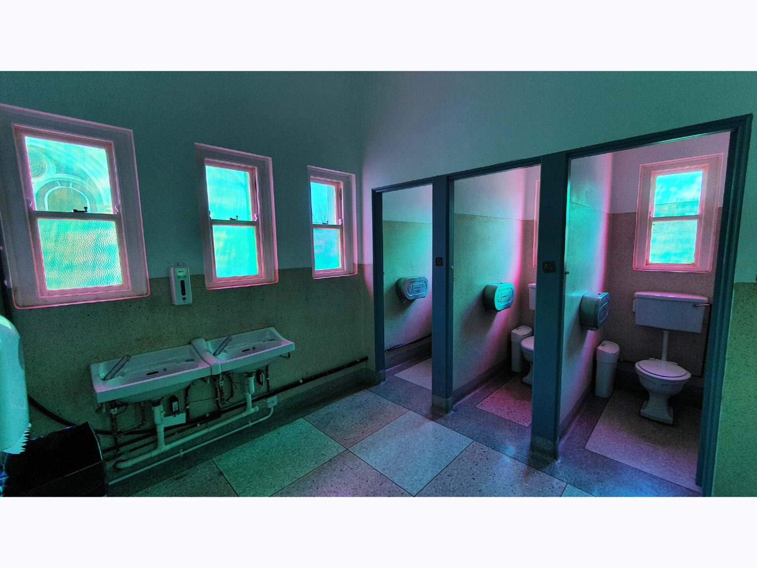 My project explores how art can make a connection to the transcendent, offering an invitation to the divine by transforming mundane spaces. As an aspiring art therapist, my mission is to help people and encourage healing through the medium of art. Kandinsky taught us that the artist’s thoughts and feelings, when translated into art, have the power to affect the spiritual climate of their society. He believed that the artist is obligated to use their talent to make a positive impact, helping humanity toward collective enlightenment. In my project, I have used iridescent film to cover the windows of several college bathrooms, creating a colour-change effect that allows the unknown to shine through. These subtle yet impactful interventions aim to uplift the viewer and prompt a sense of awe and wonder. The audience is caught off guard and can experience a sense of the spiritual somewhere entirely unexpected.