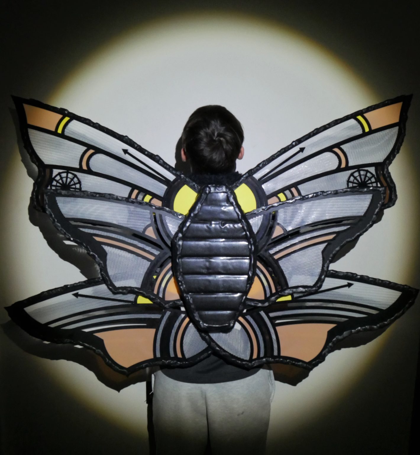 For my final project I have created a set of Costume Wings for a child actor. In context the Director of the Film "Time Flies" has hired me to create the centerpiece for his movie. They have given me the concept of time flies to design these wings. The wings that I have created are made from a mixture of materials and techniques including plastics, tape, and acetate. The techniques that are going to be used are CAD, laser cutting, painting, sculpting and molding.