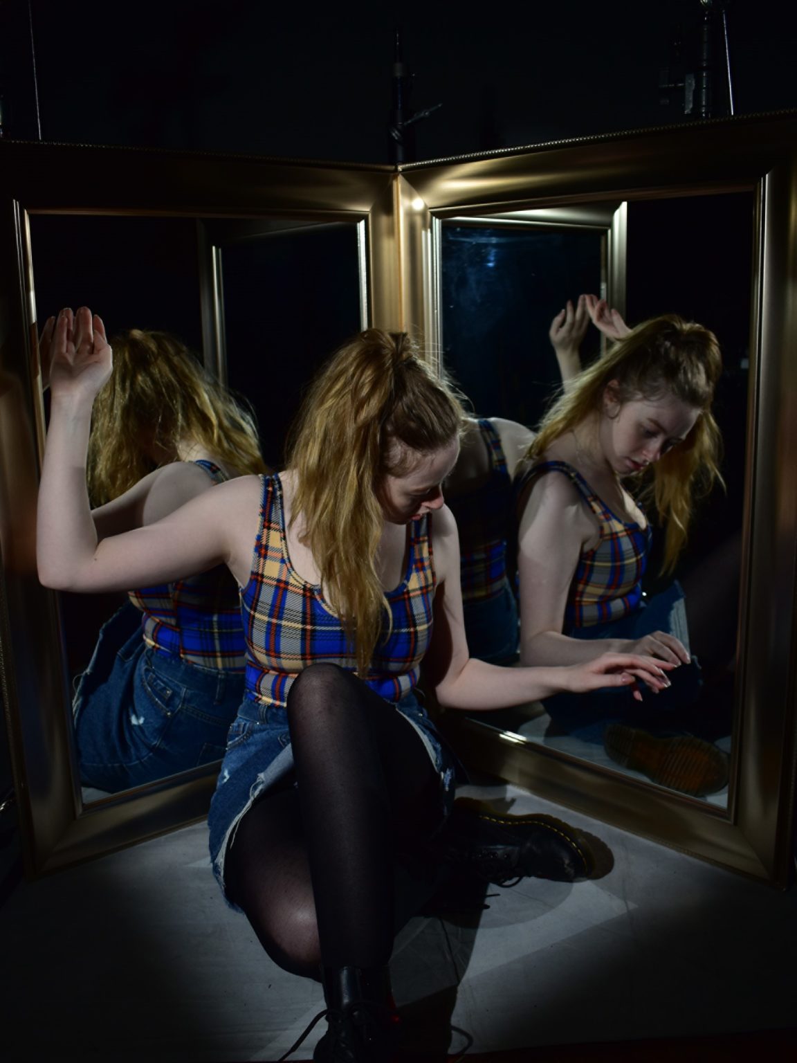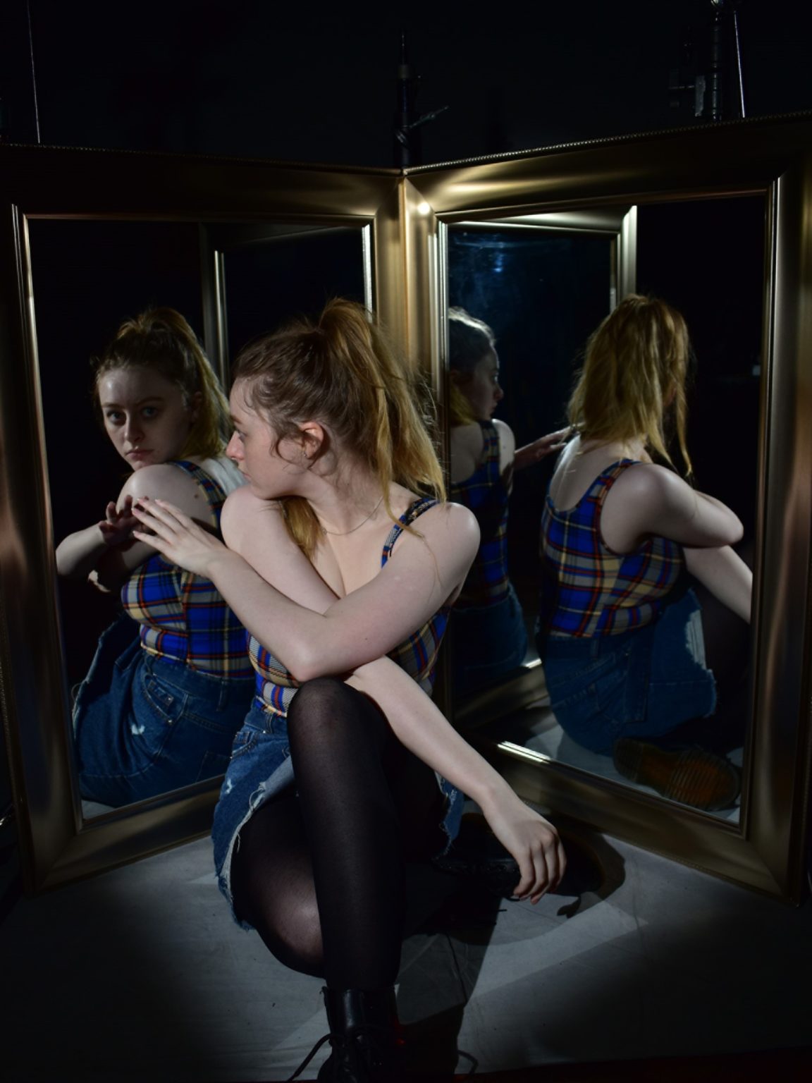 In Ciara's practice, she works with both photography and video. Her work mainly revolves around the topic of the self, she draws on experiences from her life and creates work based on her internal response. She prefers to create photographs in her practice as she loves photography and having complete creative control over what she depicts. Lighting is an important element to which she gives careful consideration. Her work usually consists of harsh lighting to achieve stark contrasts which she finds enhances the emotions that she tries to convey and she feels the medium of photography lends itself toward the dramatic.