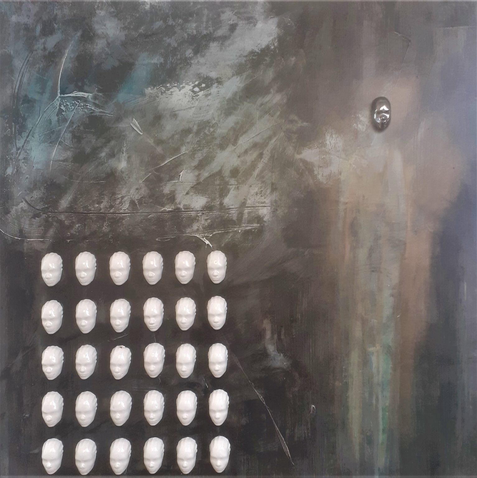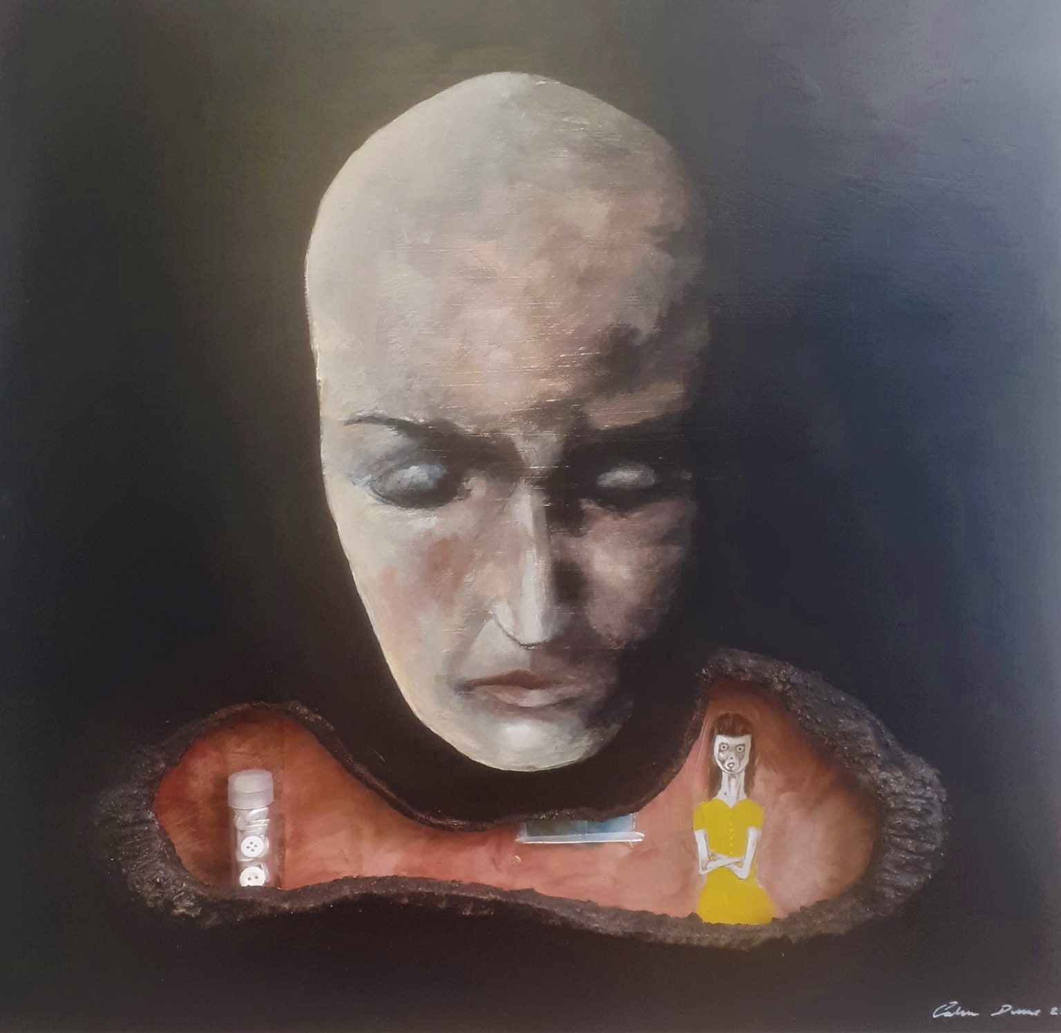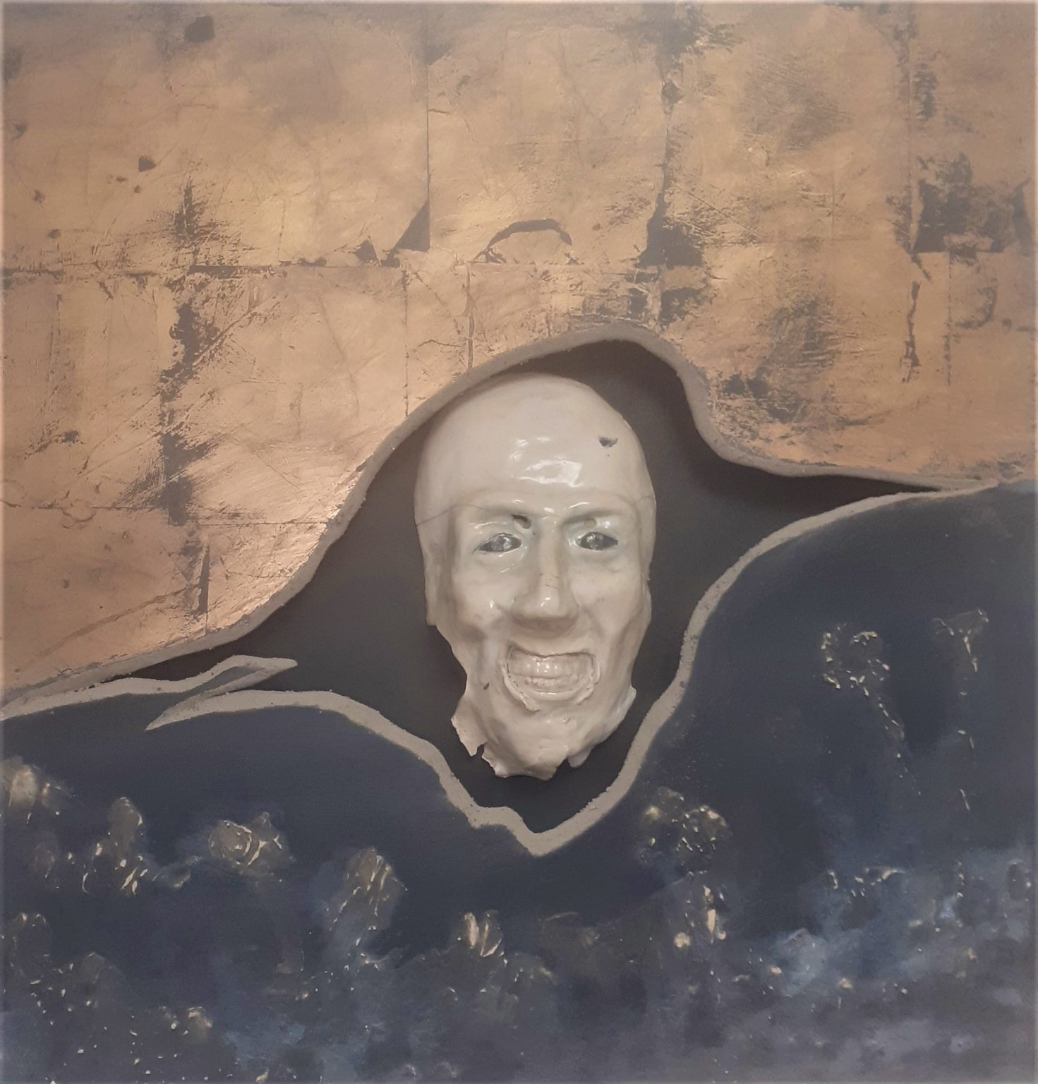 Colin Dunne is an Irish-born artist living in Wicklow town, with a background in furniture production. His works focus on the duality within people’s lives and the spiritual journey he has embraced in order to appreciate his current life. He explores these subjects through a range of media, working with paint, both oil and acrylic, occasional ceramic 3D forms, music box mechanisms, cement, gold leaf and mirrors adding visual texture. He has exhibited in the United Arts Club (2019) and Tinakilly House (Hospice Foundation 2021) and in the IADT student exhibition Propositions (2022).