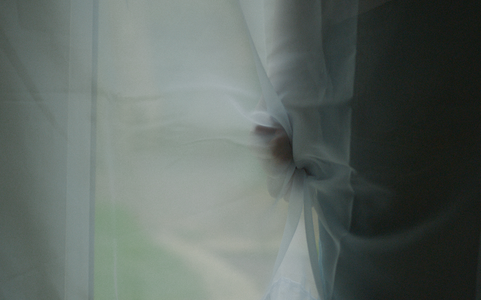 The veil-like curtain reoccurs throughout the film as a symbol of the purgatory both characters find themselves in.