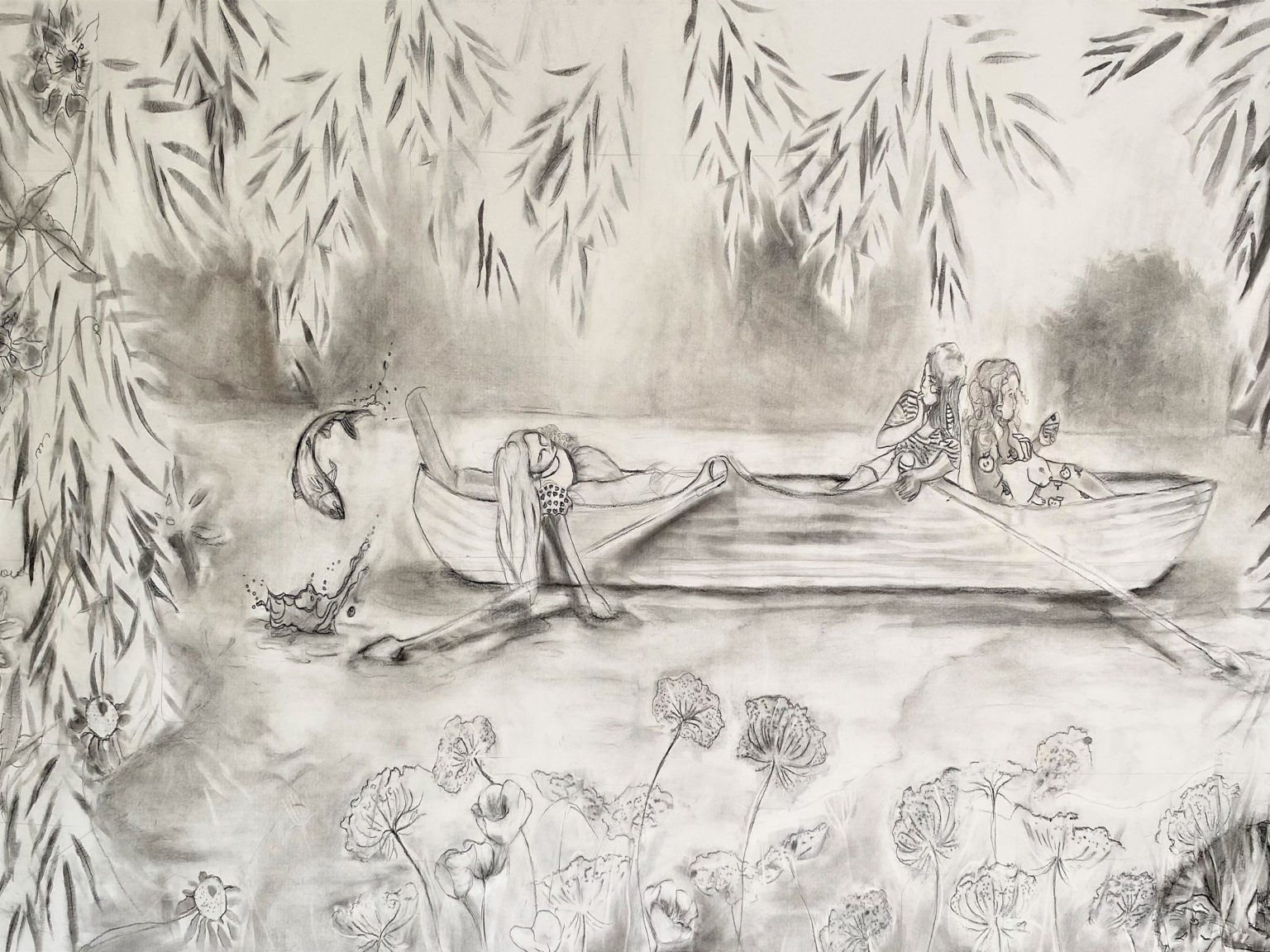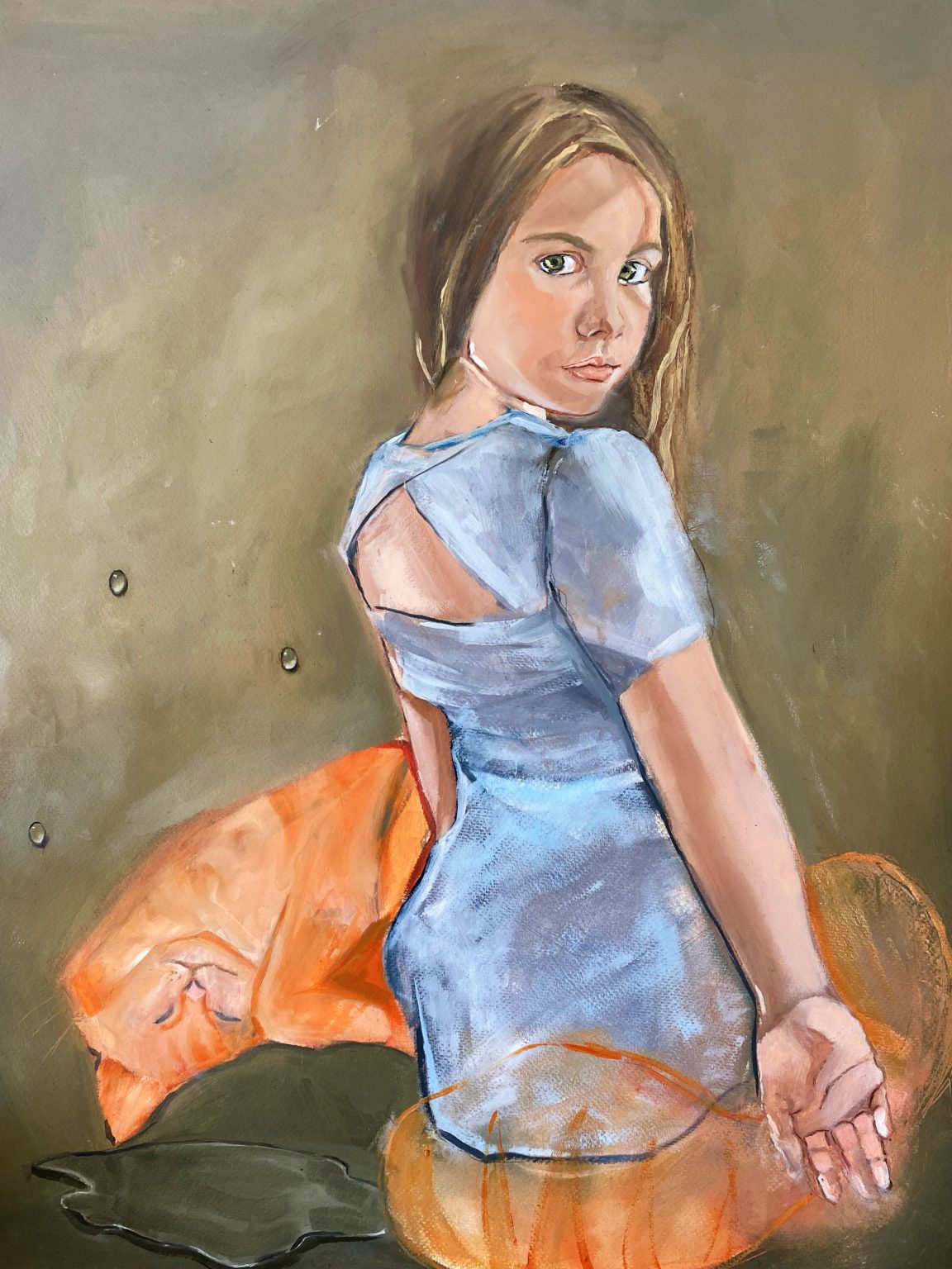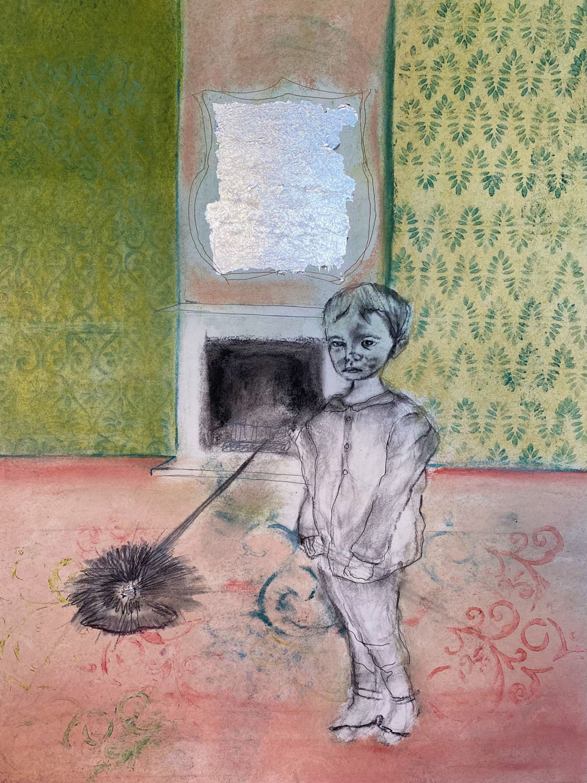 My practice explores the imagination of children and personal childhood memories of storytelling. Children’s literature is an important influence on my work, as it is my future goal to write and illustrate for children. I’m particularly interested in exploring classical children’s literature, fairy-tales and poetry. My recent works have focused on aspects of play and the simplicity of childhood imagination. My work responds to developments in the culture of childhood, such as the increased use of technologies that can become addictive for some children, such as computer games, and can hinder other forms of play, free movement and imagination. I use life drawing, photography and conversations with the children in my family to inform my approach, which focuses on capturing playful moments that are central to the final compositions in my work. I use a range of traditional and new media, including oil painting, egg tempera, drawing and print, and more recently expanded animation.