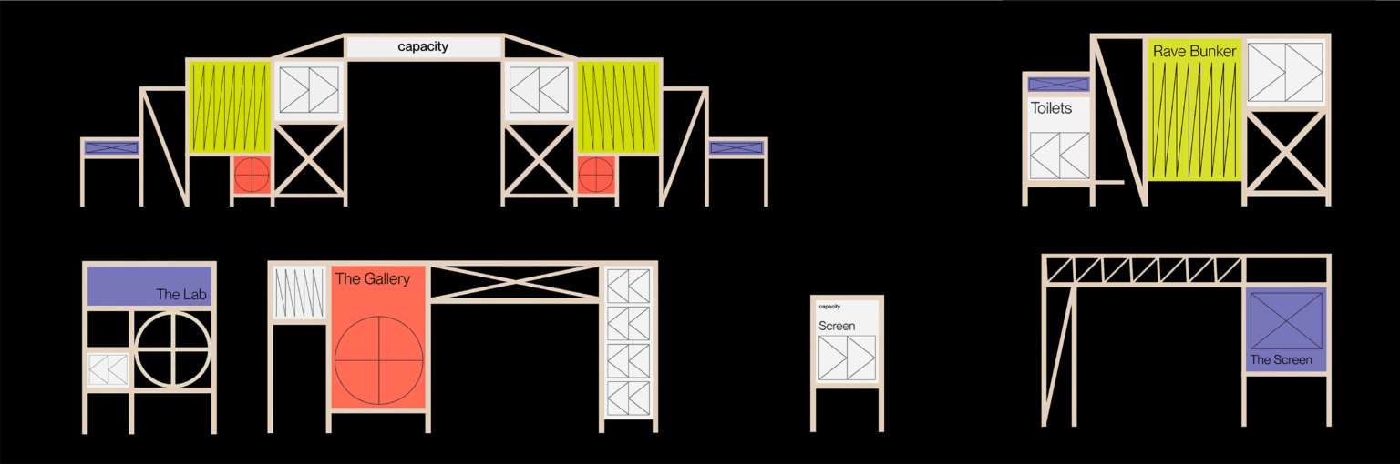 Capacity is a pop up nomadic village of stages, exhibitions and a rave bunker which focuses on giving local artists a space to perform and put their work on show. Artists can book spaces via the website to perform to the public. This is a non-curated, free space, that gives artists room to grow, a space to fail and the capacity to thrive.