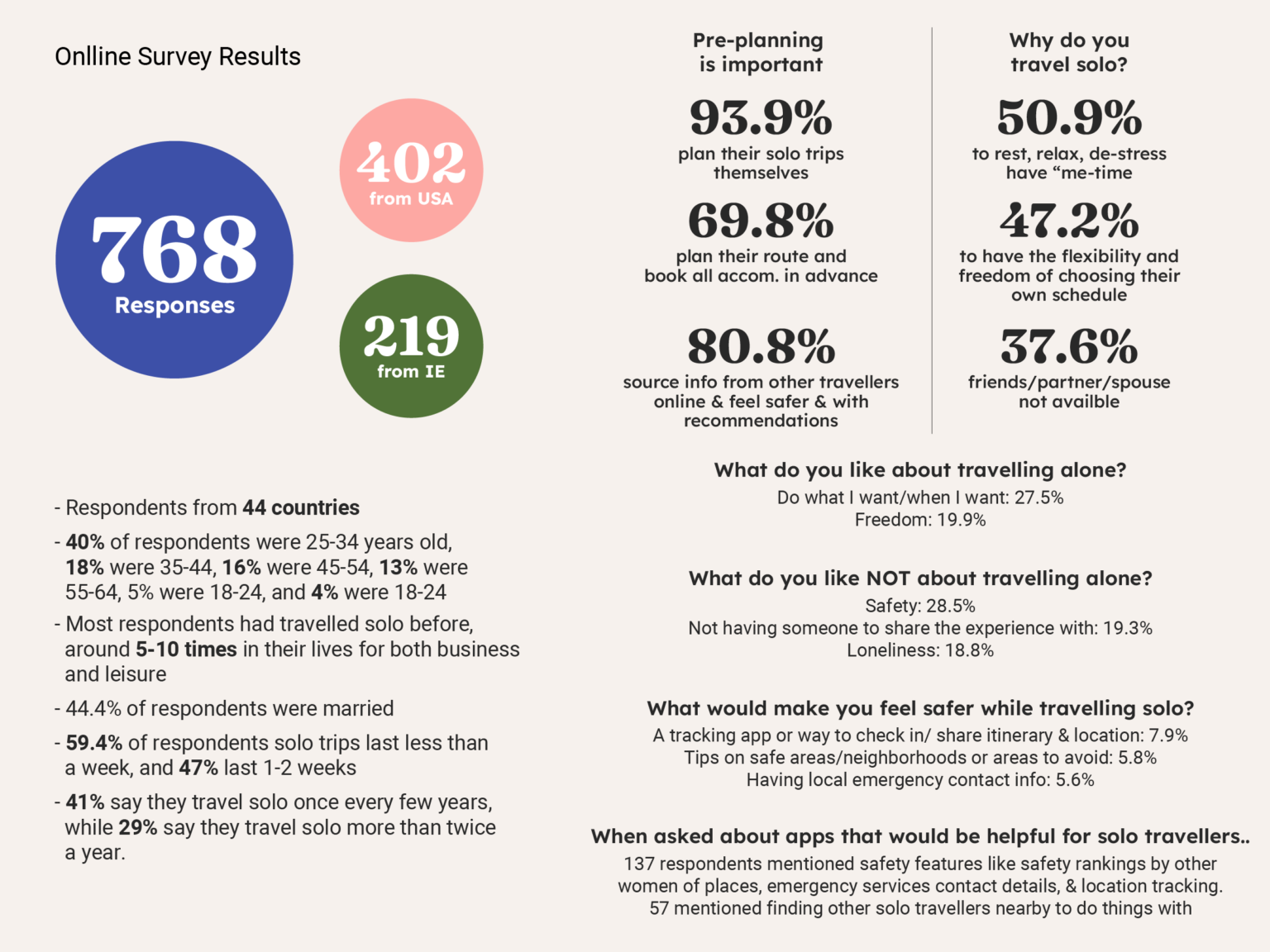 My name is Sara Granados and I'm a designer based in Dublin but originally from Louisiana. My creative interests and experience range from marketing, brand strategy, visual design, user experience, web design, and animation. For my final year research project, I focused on a topic about which I am passionate – travel. Using an empowerment-focused design methodology and empowering design principles, I created an app for solo female travellers focusing on trip planning, safety, and community to investigate if the UX design of a mobile application can influence a user’s feeling of empowerment and help women have a more enriching and transformative solo travel experience.