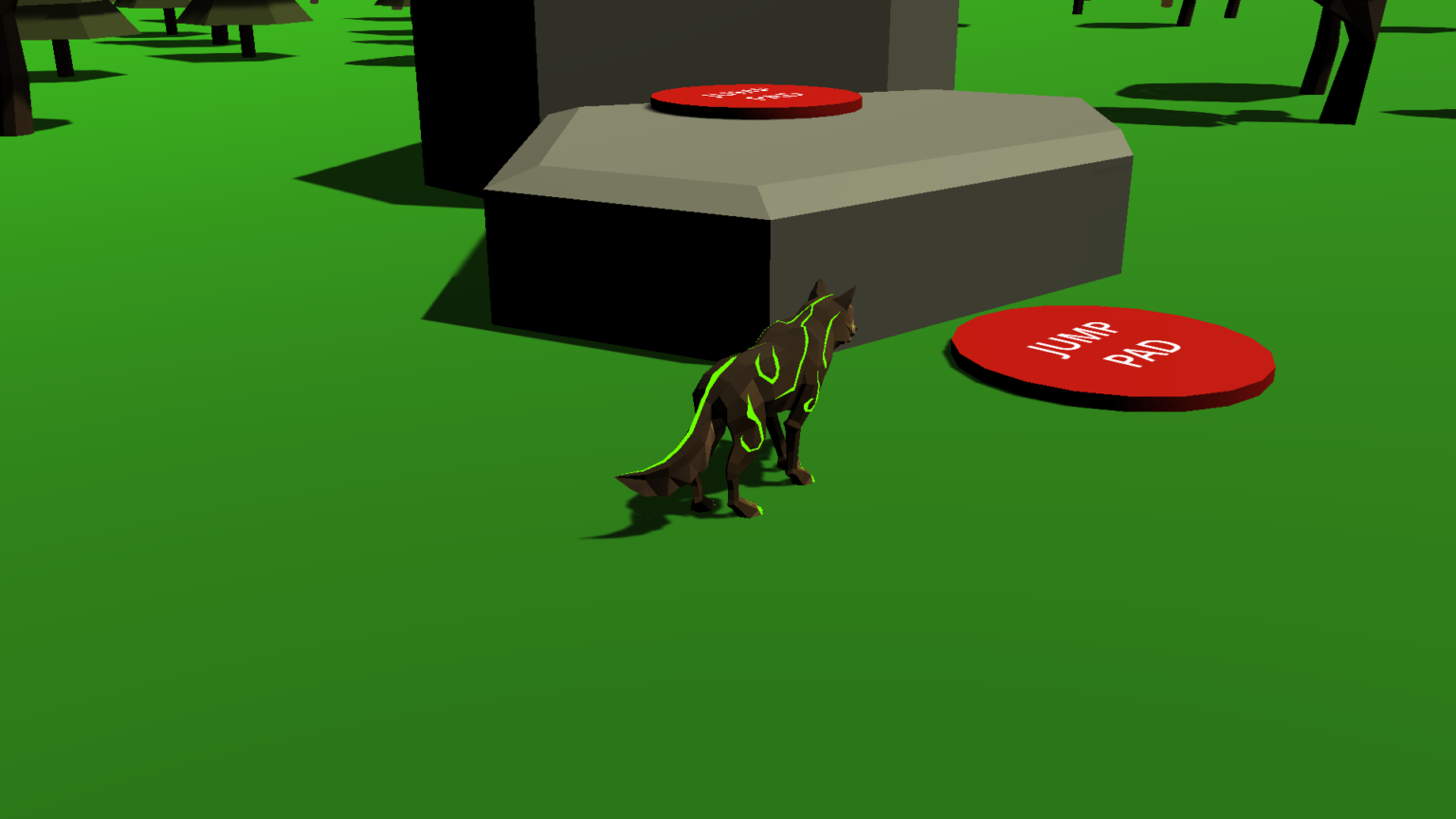 The test level developed for this project focuses on aspects of level design created specifically for quadruped characters. Quadrupeds possess their own unique abilities and limitations compared to humanoid characters. For example, quadruped characters cannot pick up items or use handheld tools, as they do not have arms. Because of this limitation, many are also unable to use ladders and other similar means of accessing high areas. One way to solve this is to allow the quadruped to pick up and hold items using their mouth, as well as using moving platforms or wind tunnels to access higher areas. Both of these solutions allow quadruped characters to perform the same actions as humanoids, but using methods better suited to their abilities and limitations. These limitations also require objects like switches to be at an accessible level to quadrupeds, usually ground level. Such objects include pressure pads, usually used for unlocking new areas when the quadruped steps on them, or jump pads, which can be used as an alternative to wind tunnels or ladders.